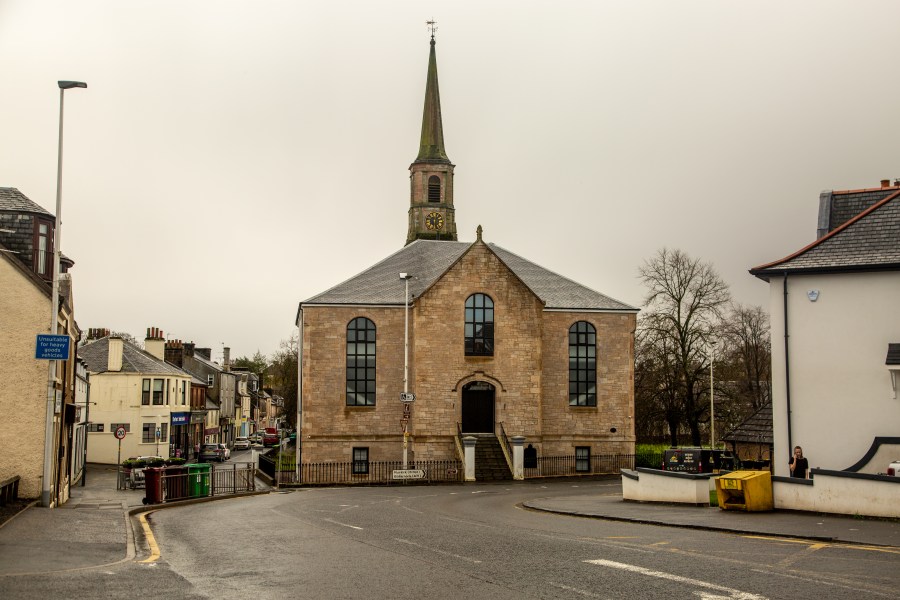You’ll pass the Aldi Store on the left and you will see the East Church House in front of you. Walk down the slope into Waterside Street and when you reach the end of the safety barrier, cross the street carefully, then walk round the front of East Church House, into Green Street. Stroll over Walker’s Brig, crossing the Powmillon Burn again.