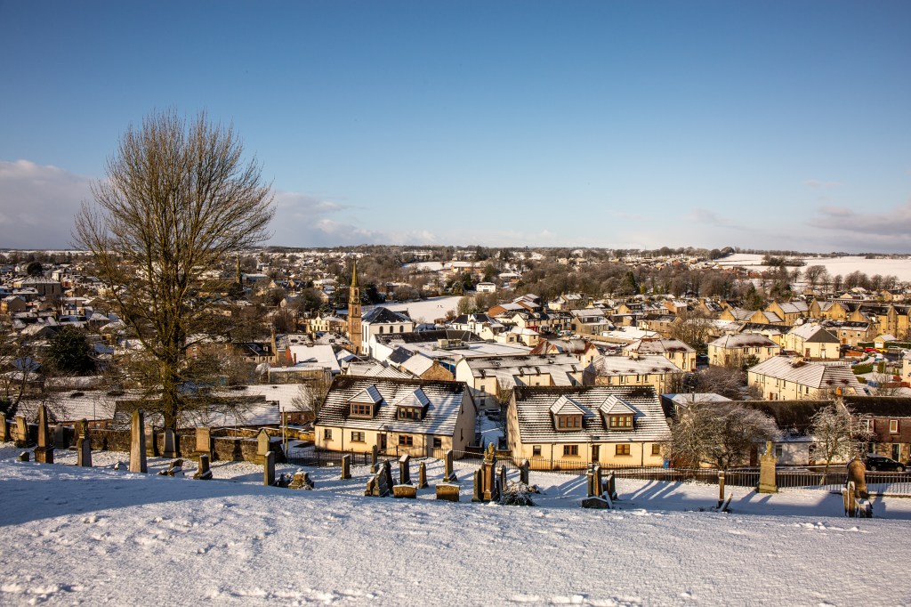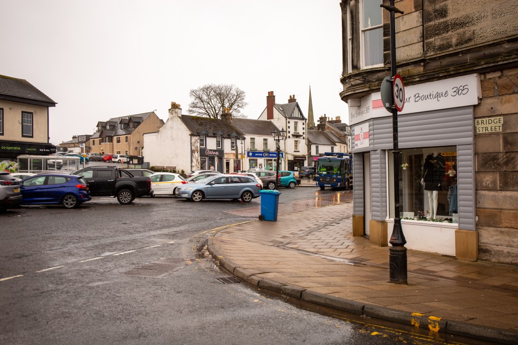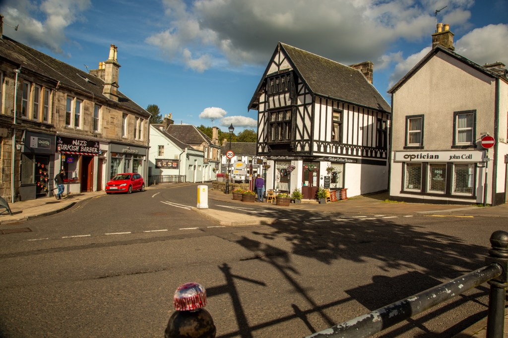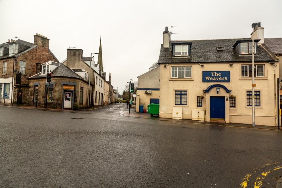 Make your way towards the Town Centre, crossing the Powmillon on Walker’s Bridge and heading up Green Street. At The Weaver’s Inn, built on the site of the old Crown Hotel, use the traffic lights to cross Lethame Road and Townhead Street safely.